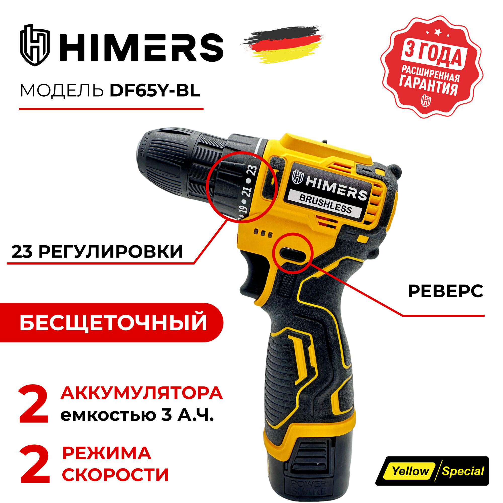Отзывы на Бесщеточный шуруповерт HIMERS DF65Y-BL аккумуляторный 18V, 2 АКБ по 3 А. ч, 65 Н. м, 10мм патрон, Версия Yellow special / Кейс / многофункциональный для сверления, закручивания 18в