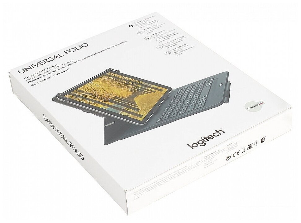 Клавиатура беспроводная LOGITECH Universal Folio with integrated keyboard for 9-10 inch tablets RUS информация: