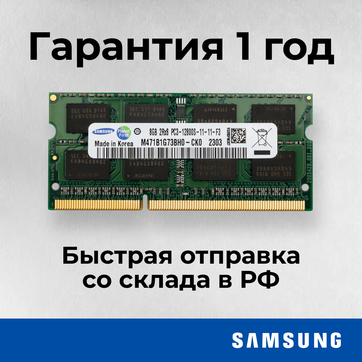 Оперативная память для ноутбука Samsung DDR3 8 ГБ 1600 МГц 1.5v CL11 SODIMM M471B1G73BH0-CK0 информация: