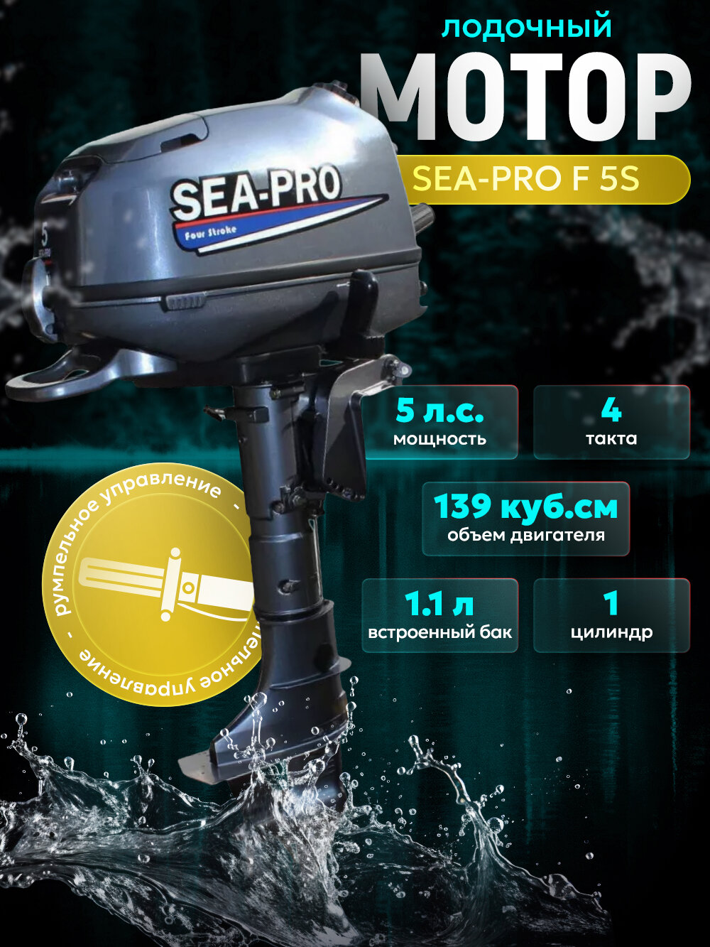 Лодочный мотор SEA-PRO F 5S бензиновый 4 тактный 5 л. с. подвесной информация:
