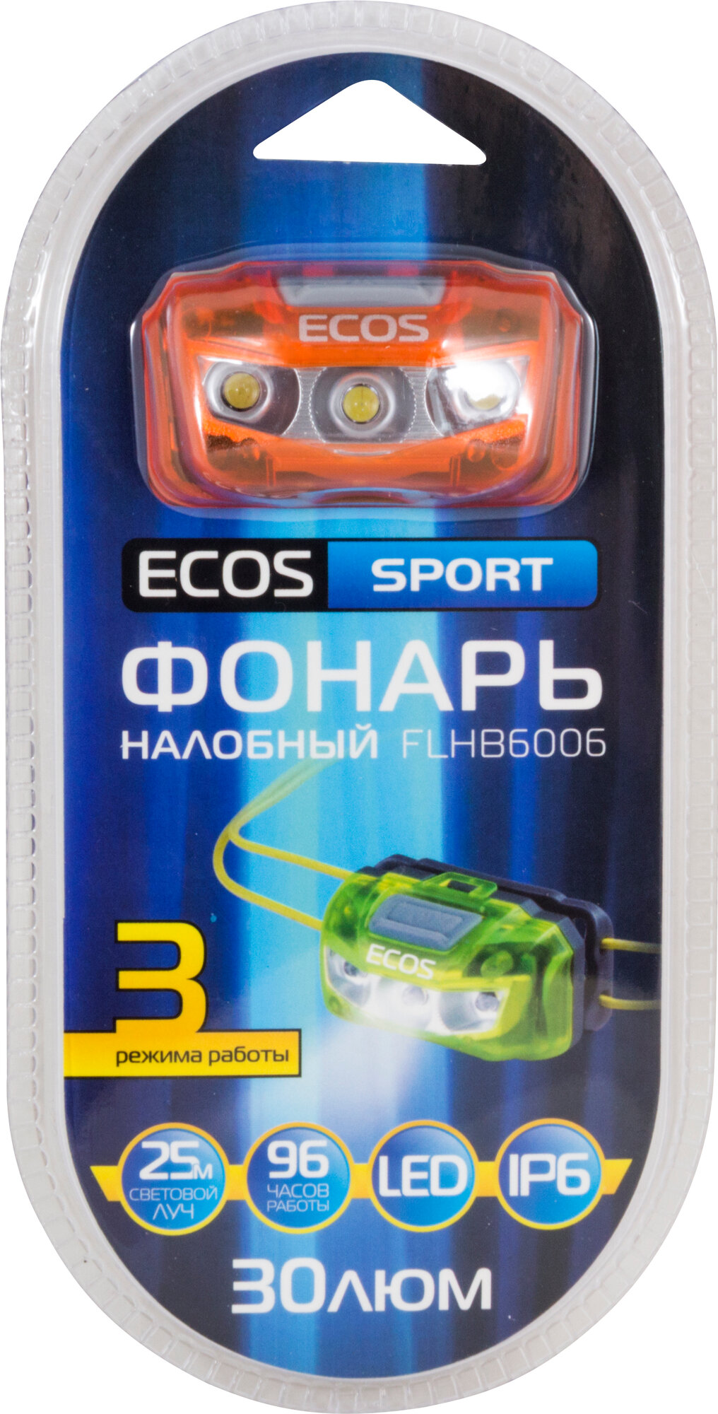 10 цен на Налобный фонарь Ecos FLHB6006, 3 светодиода, 30 лм, 96 часов работы