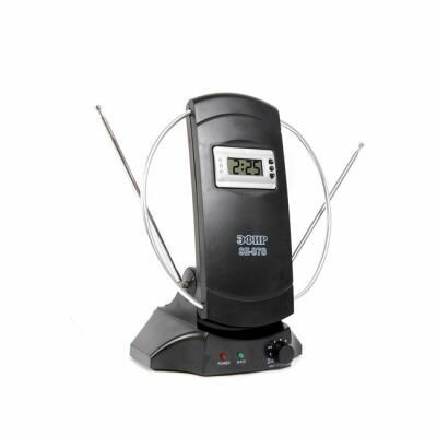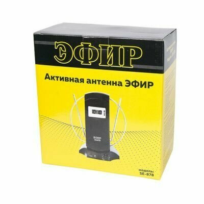 Антенна Эфир SE-878, комнатная, активная, 28 дБи, ДМВ+МВ, регулятор, усы 80см, кабель 1м
