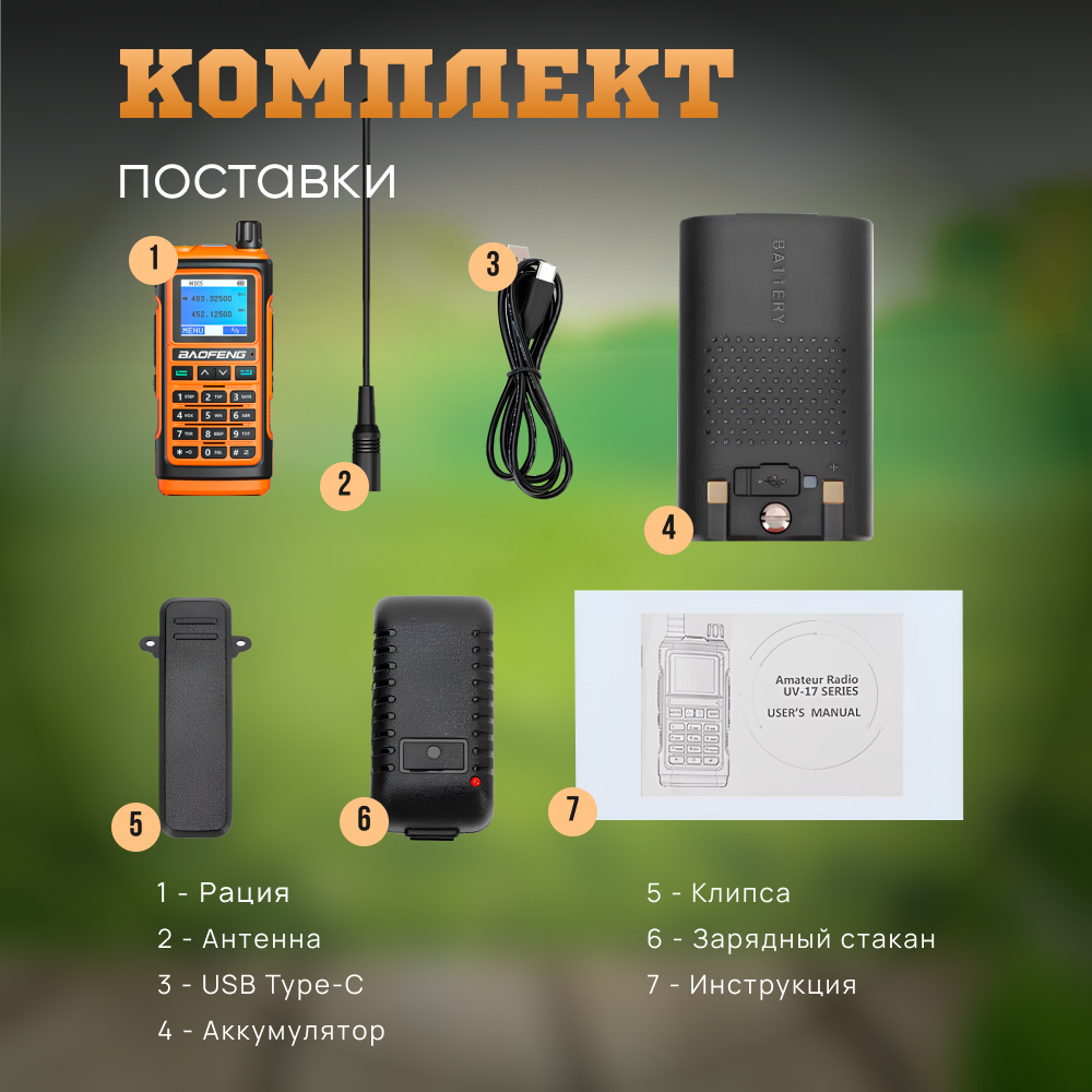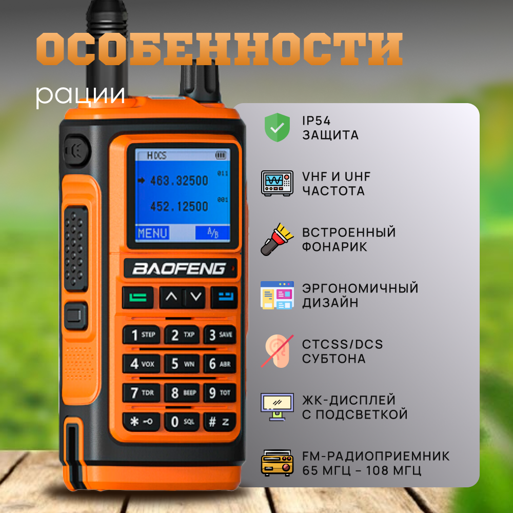 Отзывы на Рация BAOFENG BF-17H 5W аналоговая, 5 Вт, 1800 мАч, IP54, 136-174 МГц (VHF), 400-520 МГц, USB Type-C