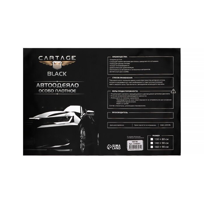 Автоодеяло для двигателя Cartage, 160×90 см, плотное, чёрное информация: