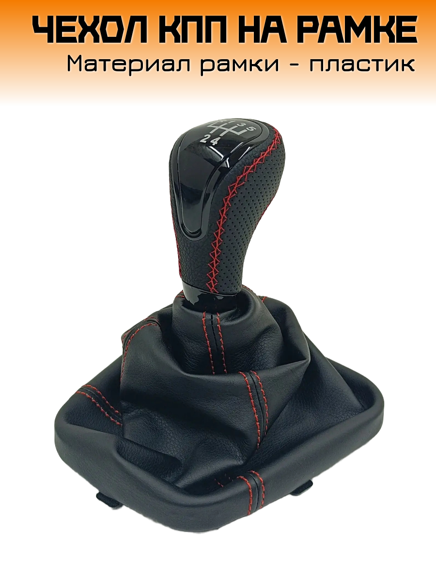 Кожух рычага КПП, экокожа с красной строчкой на ВАЗ 2113, 2114, 2115