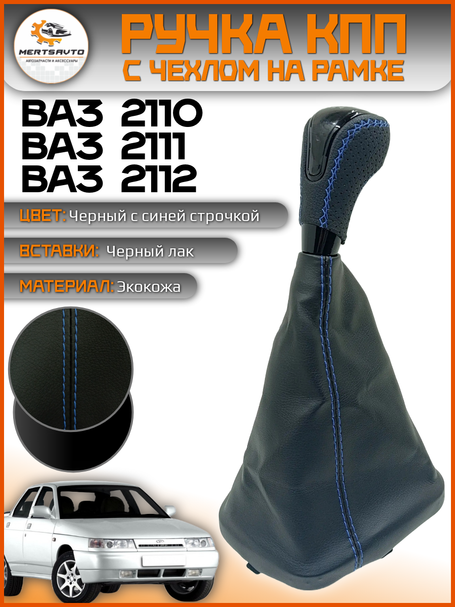 10 цен на Ручка КПП с чехлом в стиле Весты на ВАЗ-2110, 2111, 2112 (Лада, Lada) с черным лаком, (синяя строчка)