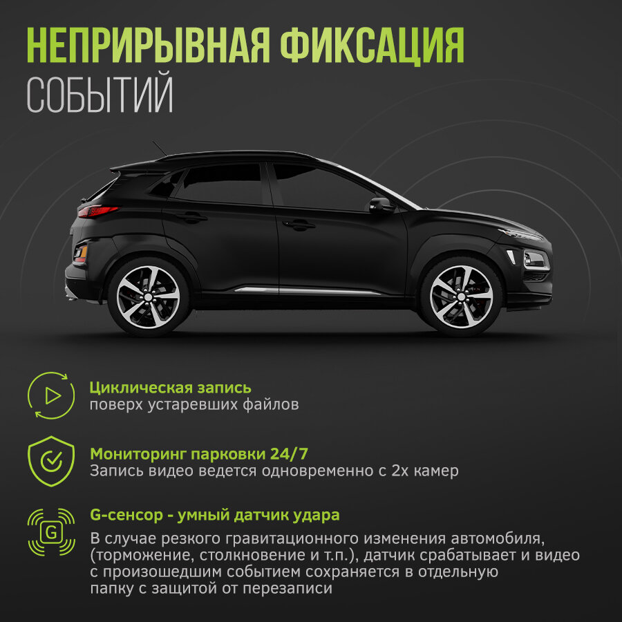 Автомобильный видеорегистратор, с камерой заднего вида, 2 камеры, 1920x1080