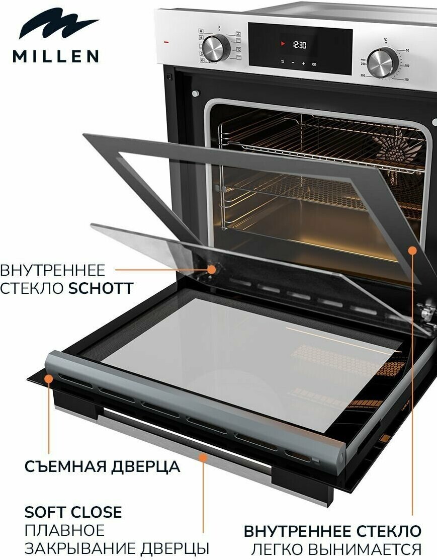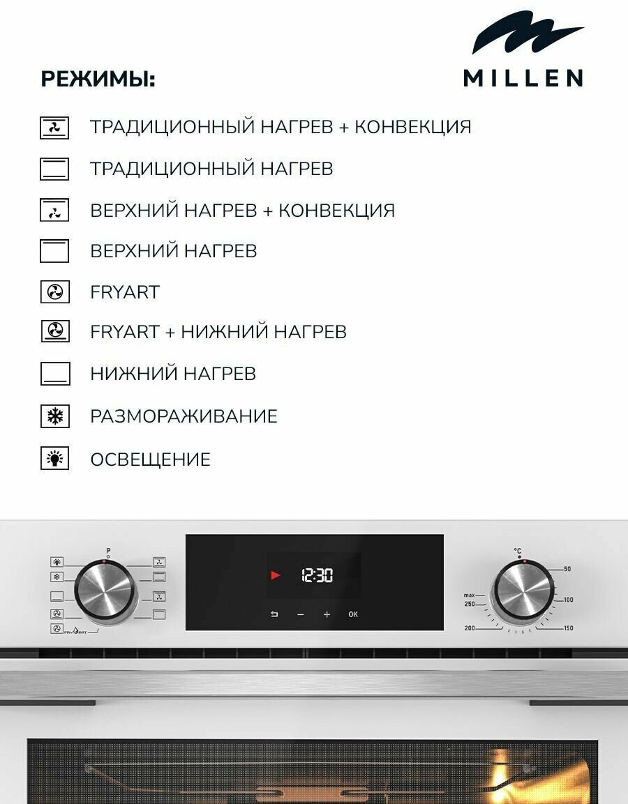 Отзывы на Духовой шкаф встраиваемый, электрический MILLEN MEO 6003 WH, Количество режимов 9, Таймер, Управление Сенсорное, Объем 78 л, Телескопические направляющие
