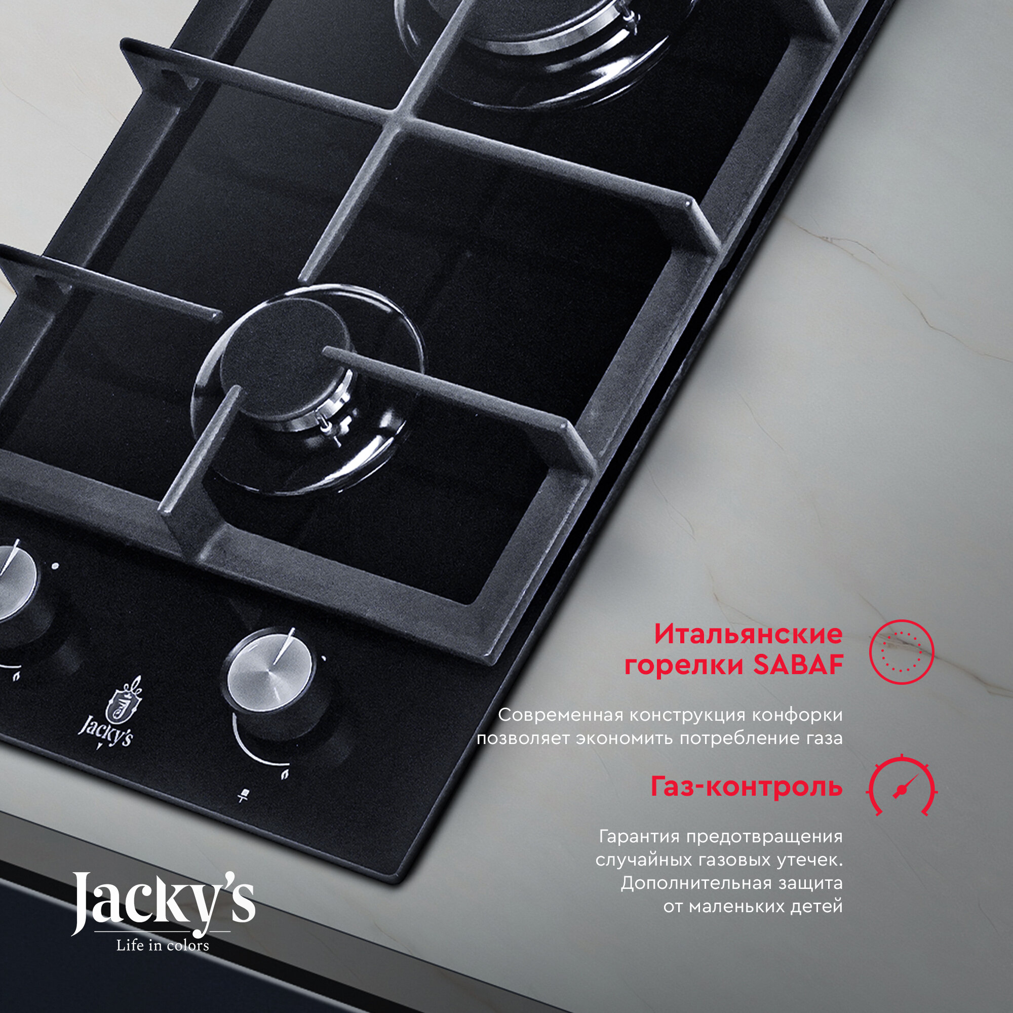Отзывы на Газовая панель Jacky's JH GB331, 2 комфорки, черная, газ-контроль, автоподжиг, стекло