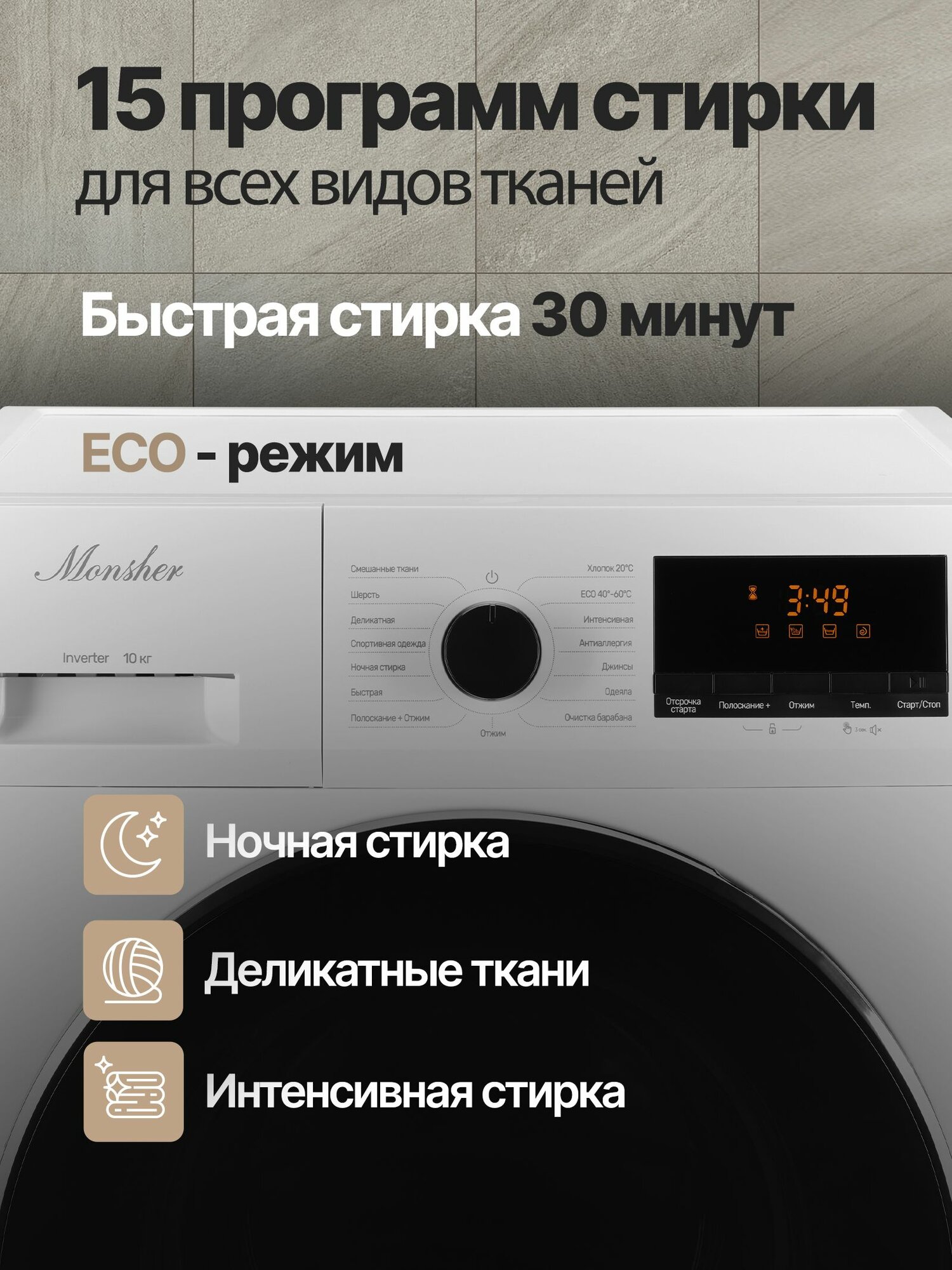 | Количество программ стирки | 15 |