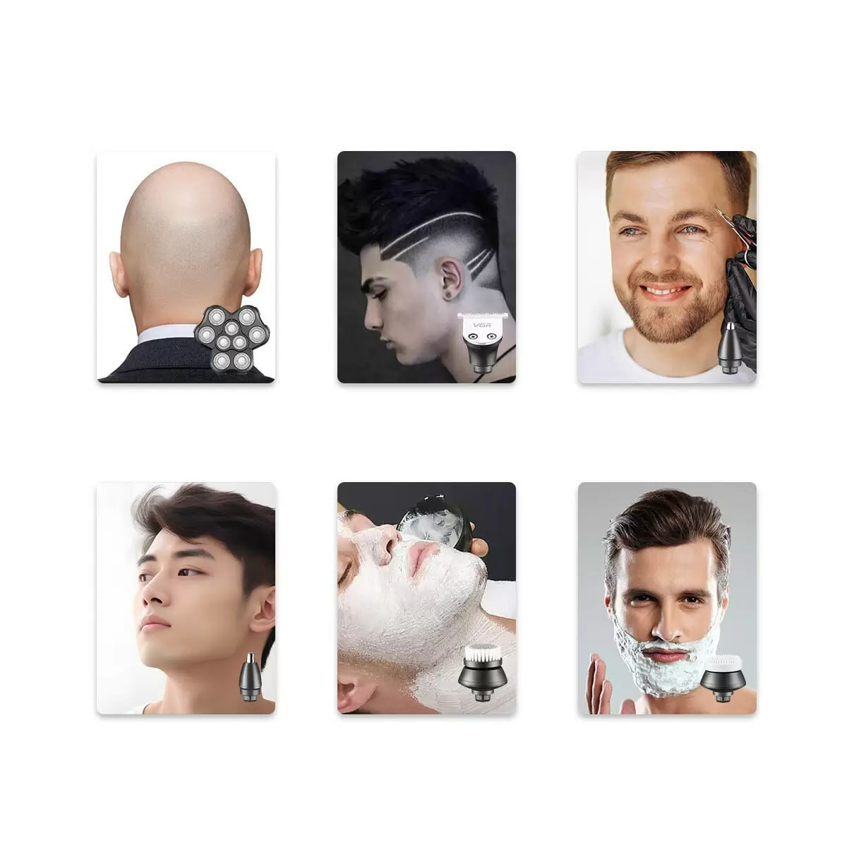10 цен на Бритва электрическая мужская VGR V-396, водонепроницаемая, с 9 насадками, жёлтая