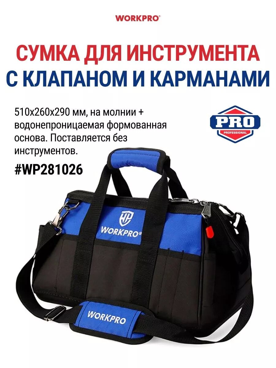 Сумка для инструментов, 460 мм, WP281005, WORKPRO #WP281005, цвет черно-синий 2 646 ₽