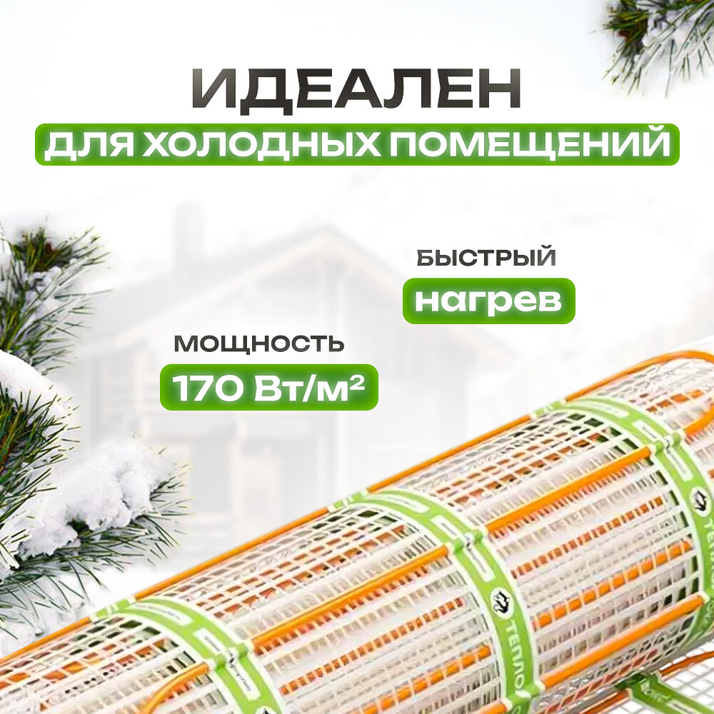 Нагревательный мат Теплолюкс ULTRA, 170Вт/м², 1365Вт, 8м², 2м холодного кабеля 15 348 ₽