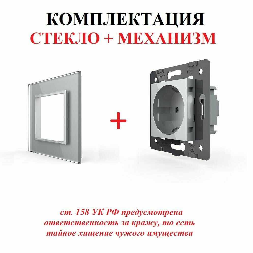Розетка электрическая Livolo, с заземлением, защитными шторками и стеклянной рамкой, одинарная