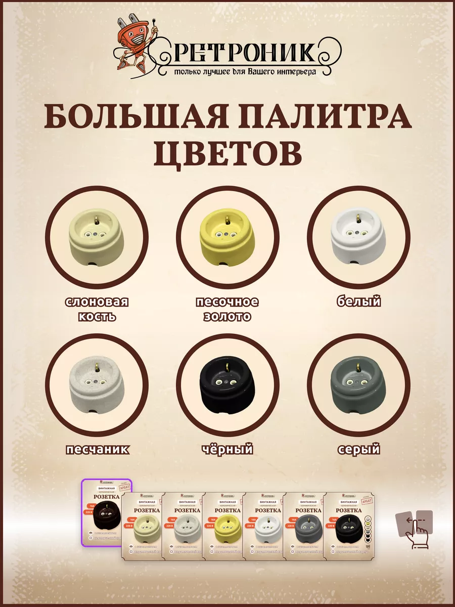 10 цен на Розетка керамическая Ретро Interior Electric, Арбат, с/з 16а, шоколад (коричневый) арт. SCIE/BR-04