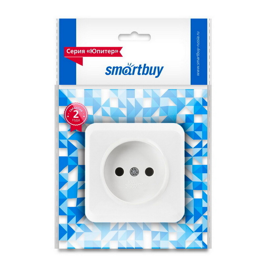Розетка Smartbuy 1-местная 10А без заземления "Юпитер", белый информация: