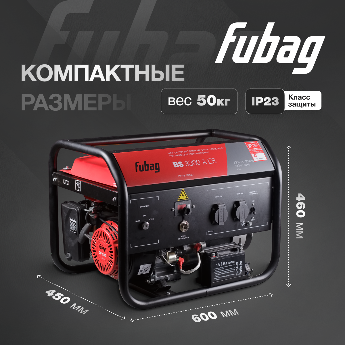 Генератор бензиновый FUBAG BS 3300 A ES, 3 кВт, 220 В, однофазный информация:
