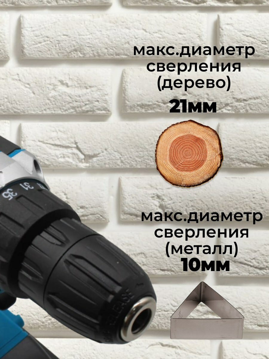 | Макс. диаметр сверления (дерево) | 21 мм |