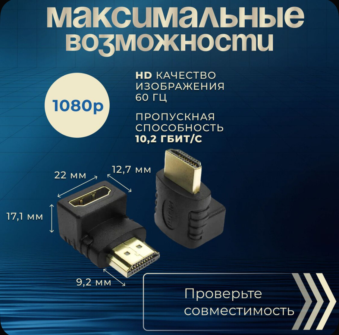 10 цен на Адаптер-переходник BR-01 (угловой 90 градусов) HDMI (F) - HDMI (M) (270 градусов) (Черный)