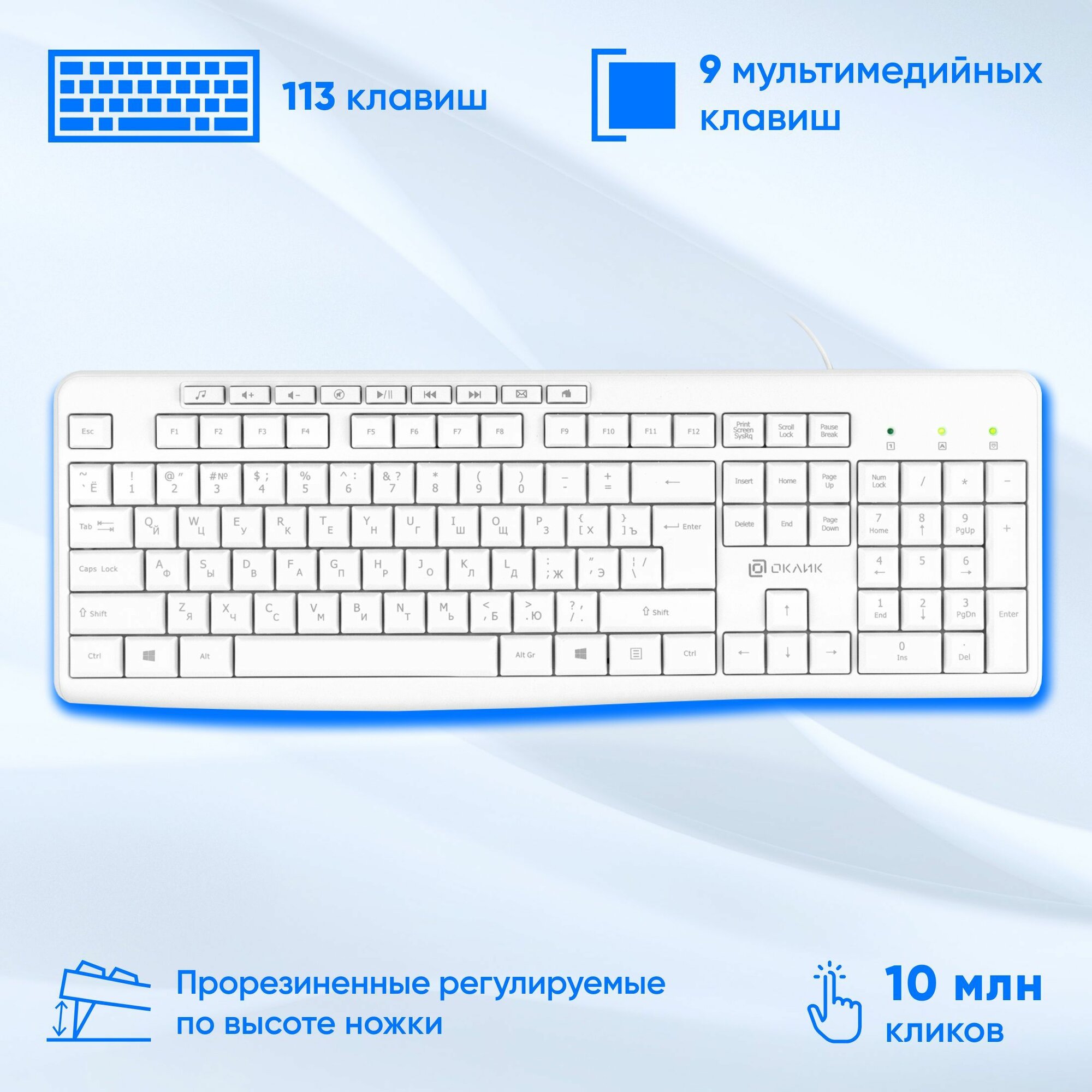 Комплект проводной клавиатура + мышь Oklick S650, USB, Белый 1875257 1 410 ₽