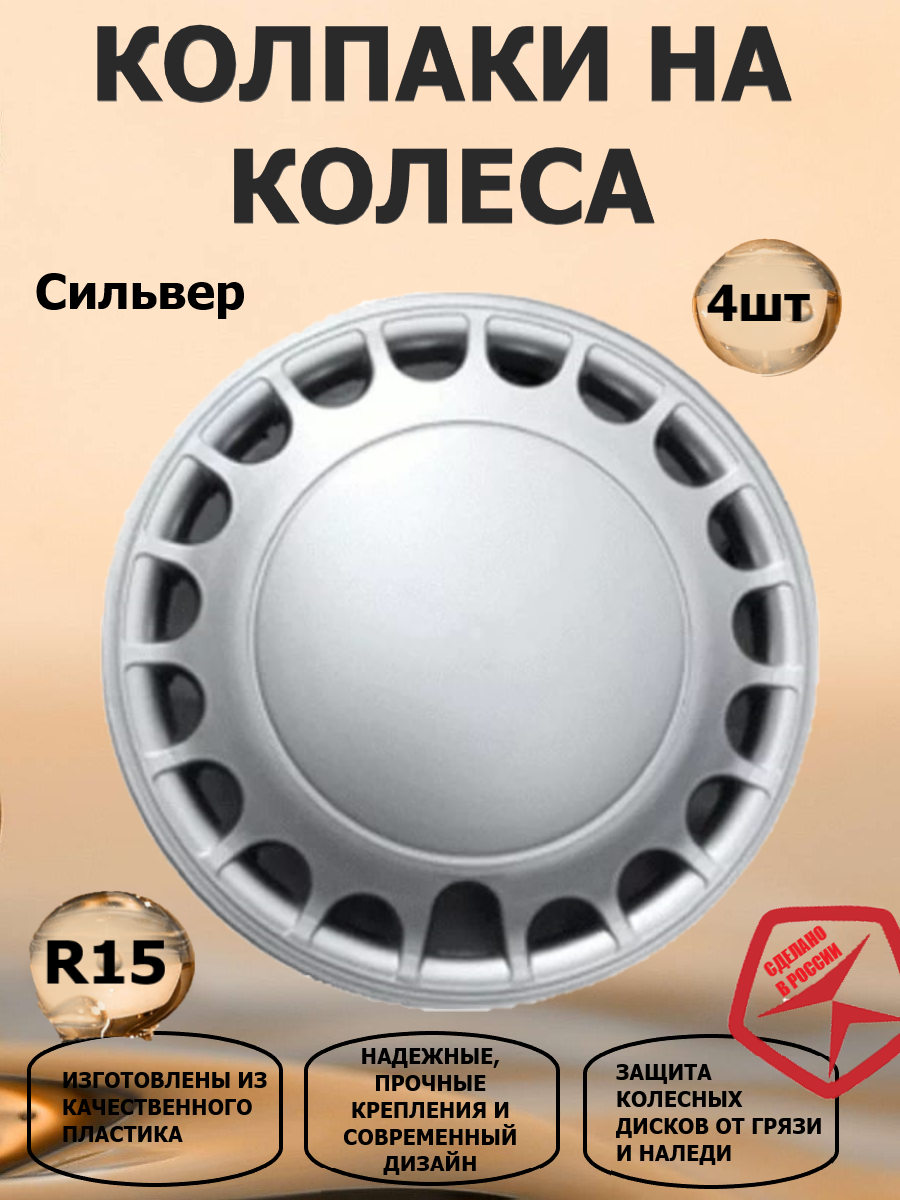 Колпаки на колеса R15 Сильвер, цвет серебристый, 4 штуки в комплекте информация: