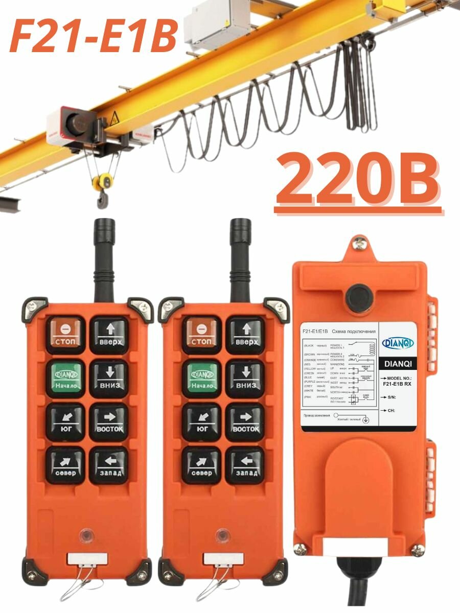 Промышленный дистанционный регулятор - пульт F21-E1B для подъемного крана / балки / тельфера и тали 220В UHF 868 mhz 2 передатчика + 1 приемник (У) информация: