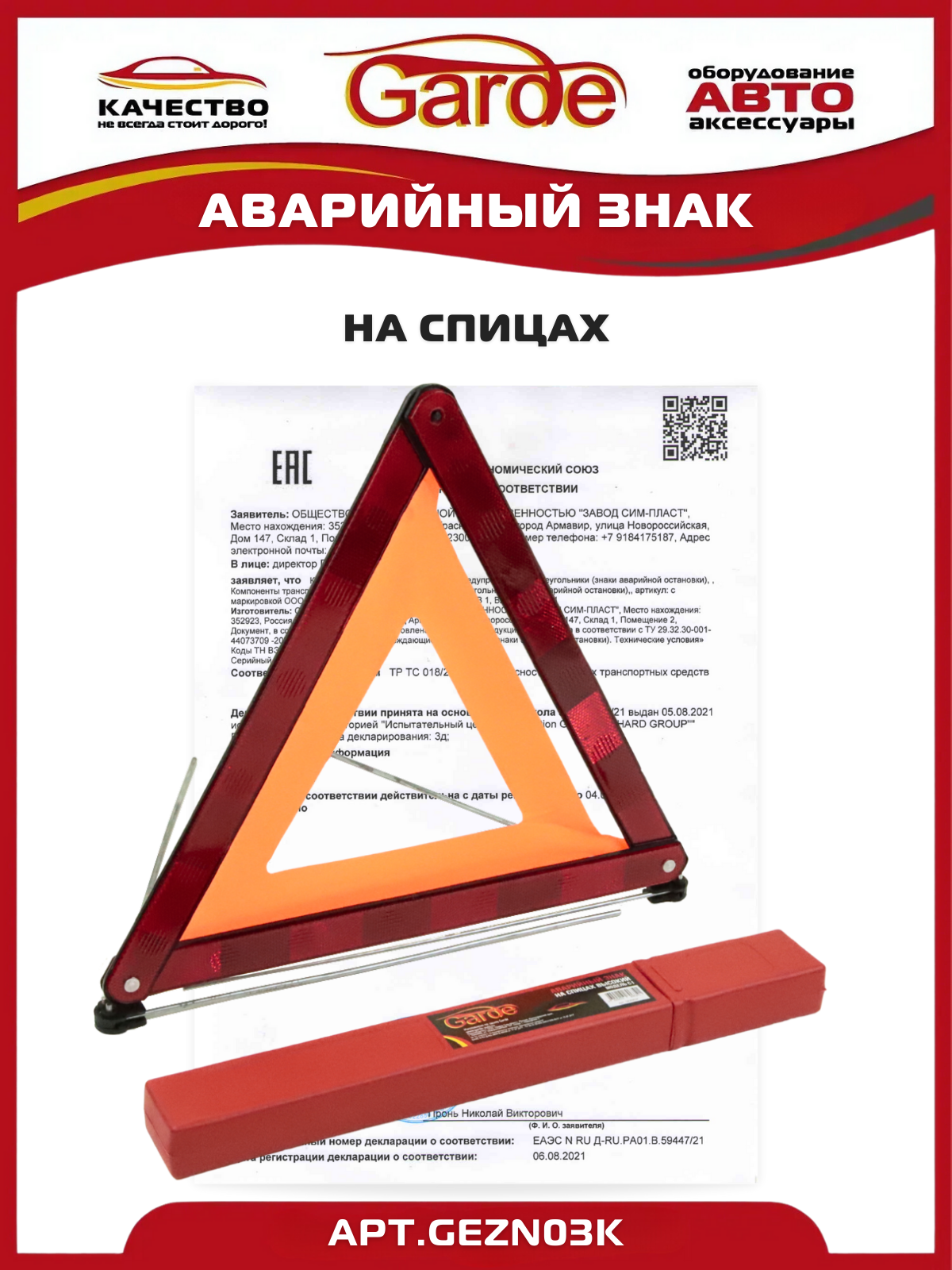 GARDE GEZN03K Аварийный знак Garde в пенале на спицах GEZN03K в пластиковом пенале