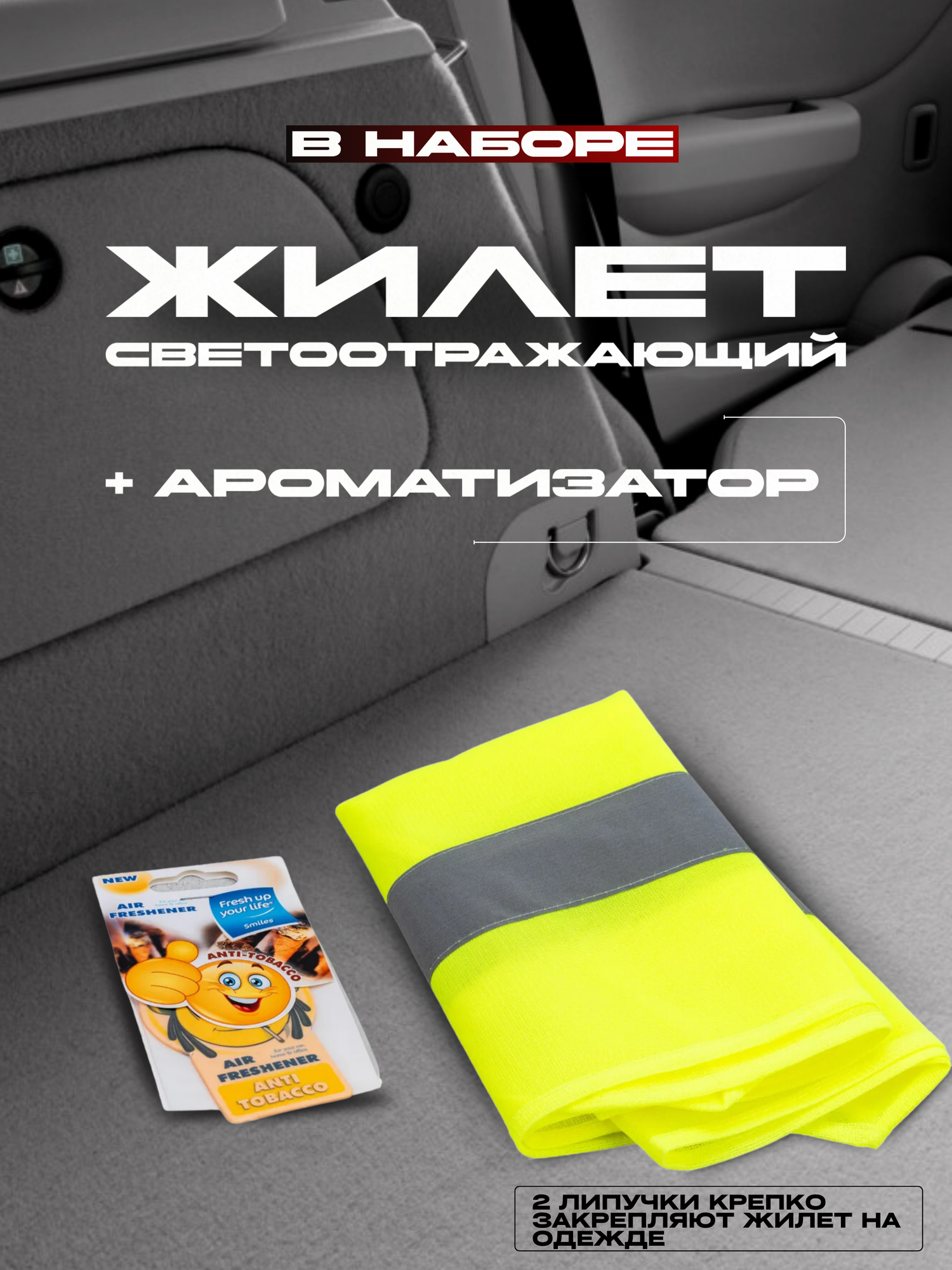 | В наборе | аптечка / жилет светоотражающий / знак аварийной остановки / огнетушитель / перчатки / трос буксировочный / маска / пакеты для колес / противооткатный башмак / сумка |