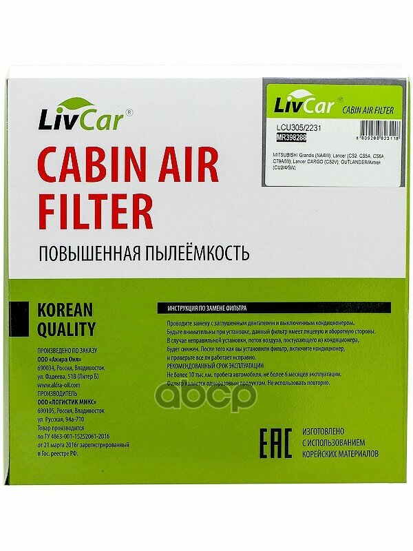 Фильтр Салонный Livcar Oem Mr398288 Mitsubishi (Rhd Lhd) LivCar арт. lcu305/2231