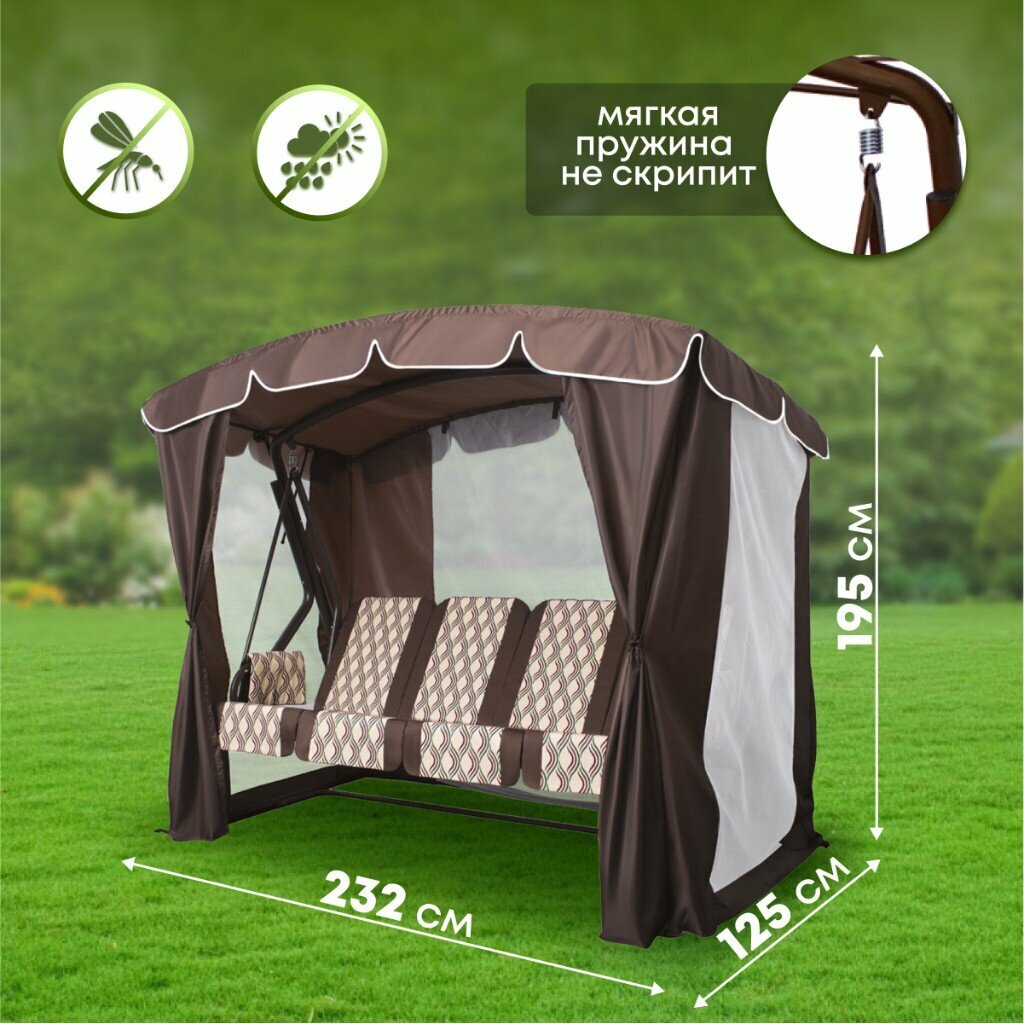 Качели садовые трёхместные Arno Оазис 2016-КД-40/Л коричневые, до 300 кг