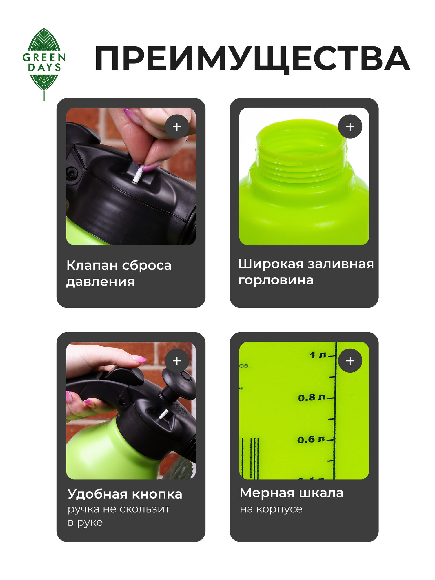 Отзывы на Опрыскиватель садовый для дачи и огорода, помповый, 2л, Green Days