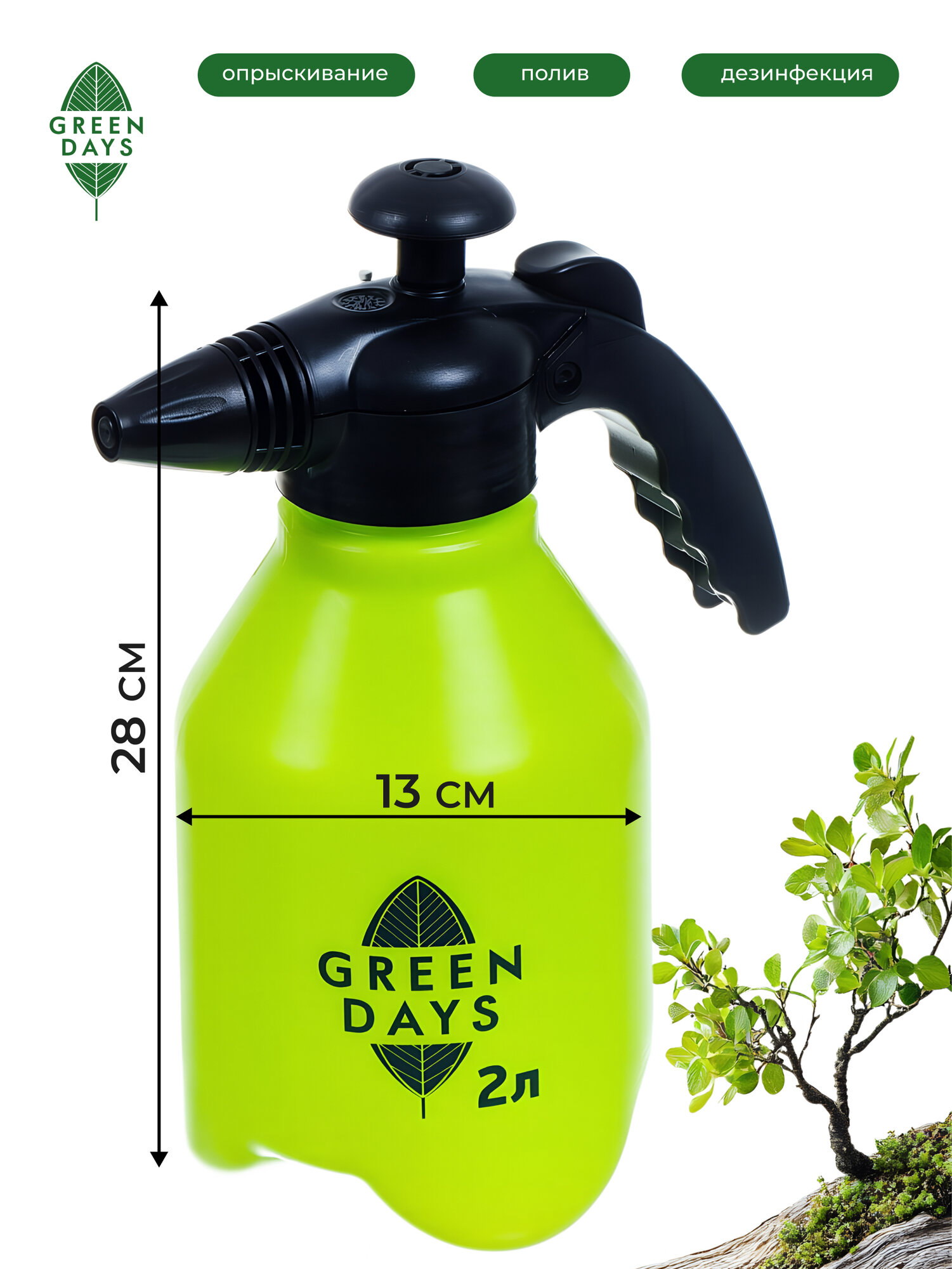 Опрыскиватель садовый для дачи и огорода, помповый, 2л, Green Days информация: