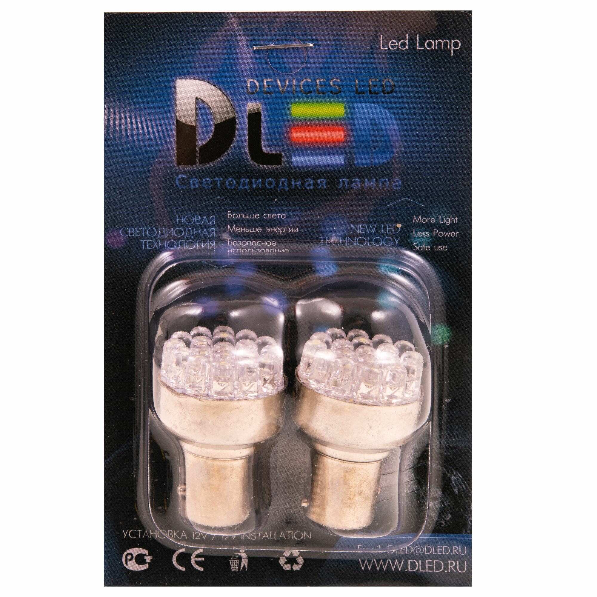 Светодиодная автомобильная лампа P21/5W патрон BAY15d 12V светодиоды 19 Dip-Led бренд DLED цвет свечения Белый - 2шт информация: