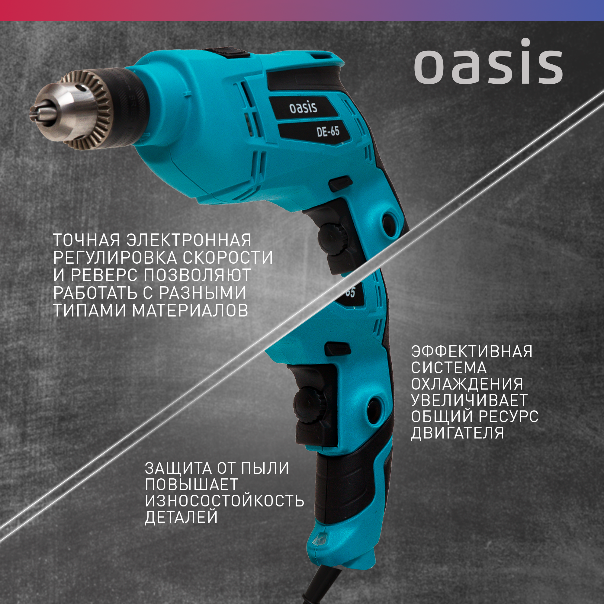 Отзывы на Дрель электрическая Oasis DE-65, безударная, с регулировкой частоты вращения, синяя