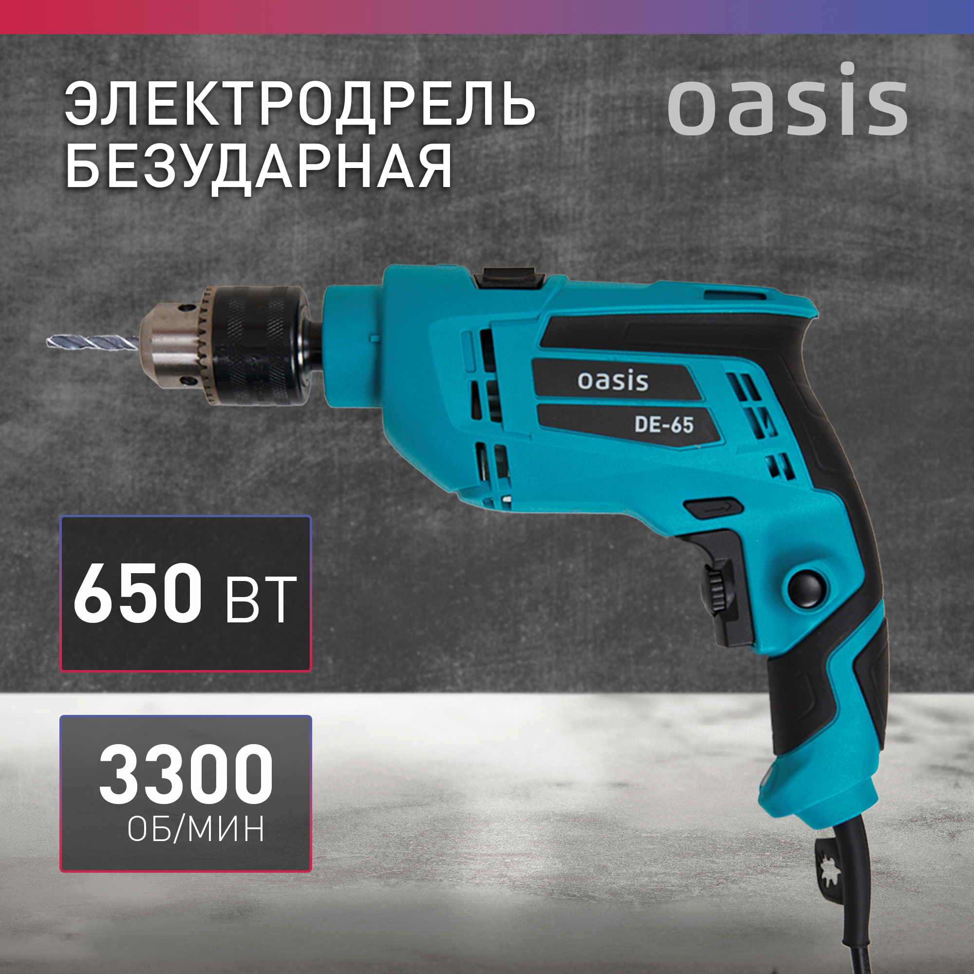 Дрель электрическая Oasis DE-65, безударная, с регулировкой частоты вращения, синяя информация: