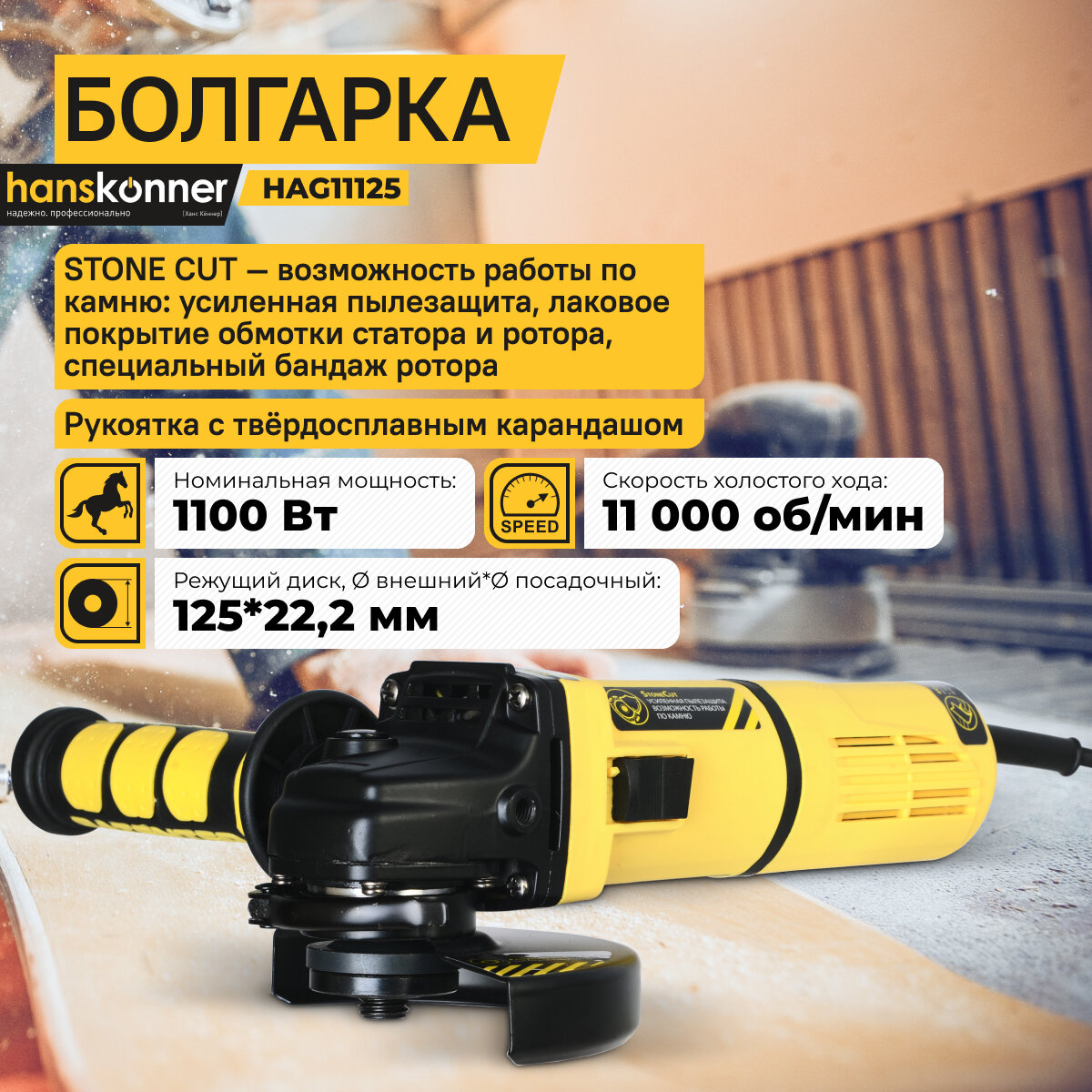 10 цен на Болгарка (УШМ) Hanskonner HAG11125, 125 мм, 1100 Вт