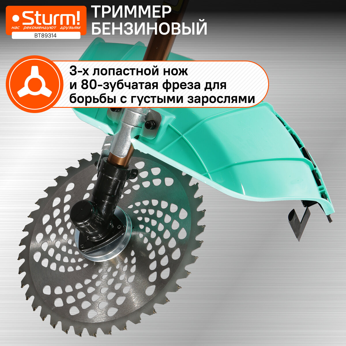 Бензотриммер Sturm! BT89314 1400 Вт/1.9 лс, 31 см3, 4-ХТАКТНЫЙ, фреза/леска/ранц. ремень информация: