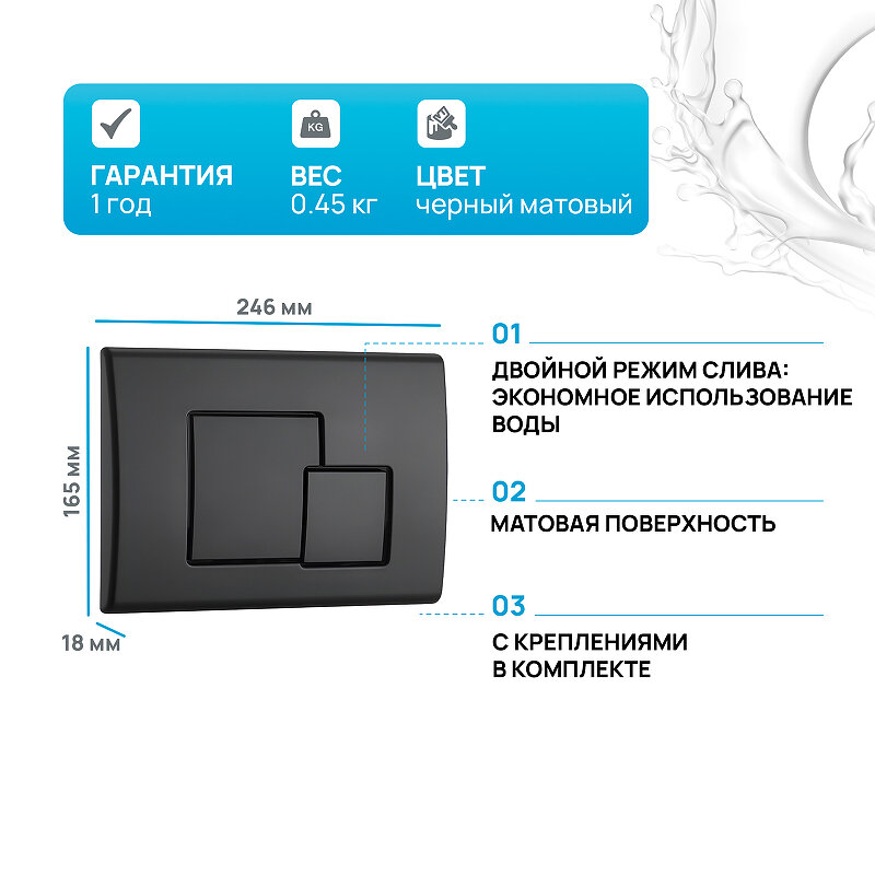 Клавиша смыва WeltWasser WW Marberg 507 SE MT-BL 10000010239 Черная матовая информация: