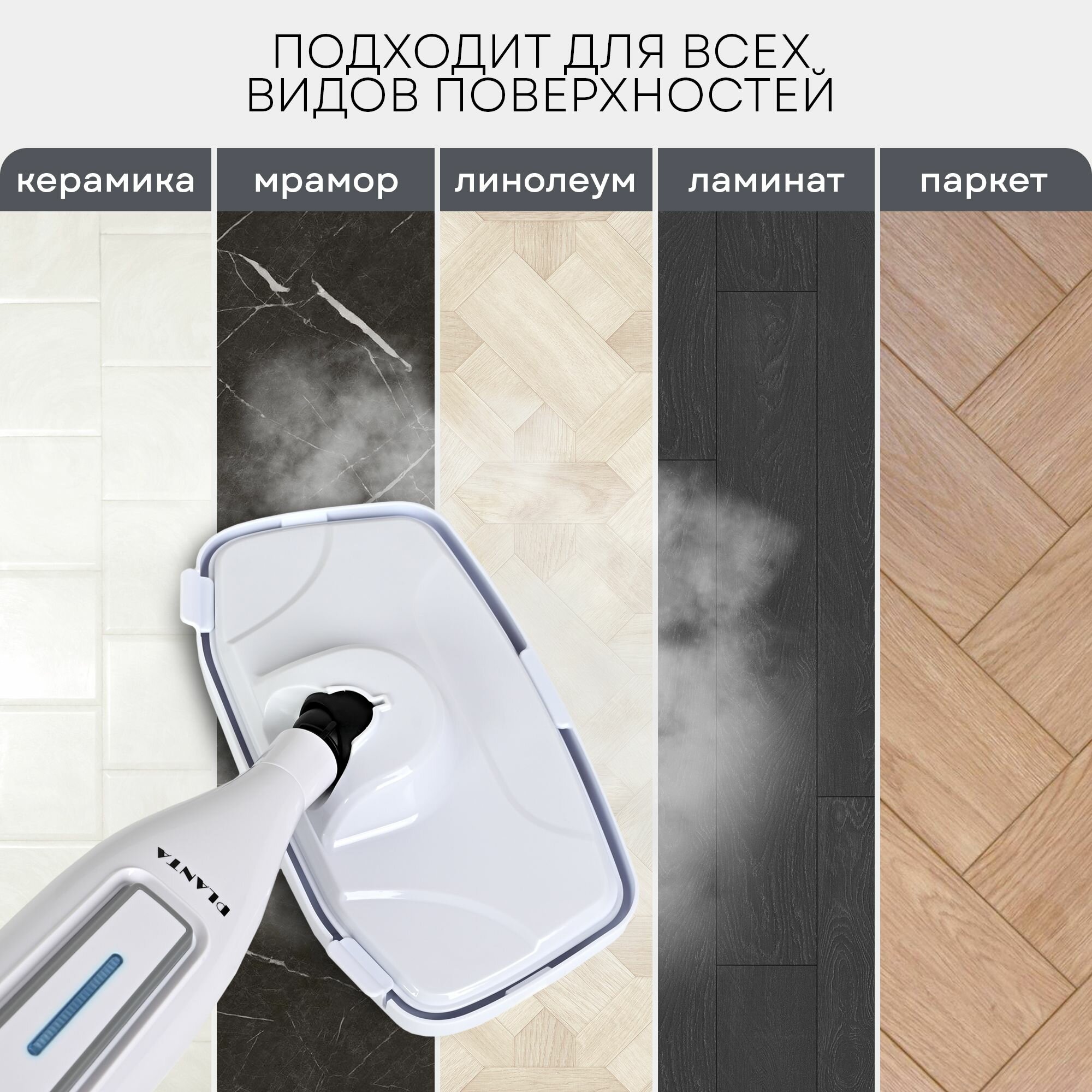 10 цен на Паровая швабра 2 в 1 PLANTA PL-SM03: швабра и парогенератор, 7 насадок