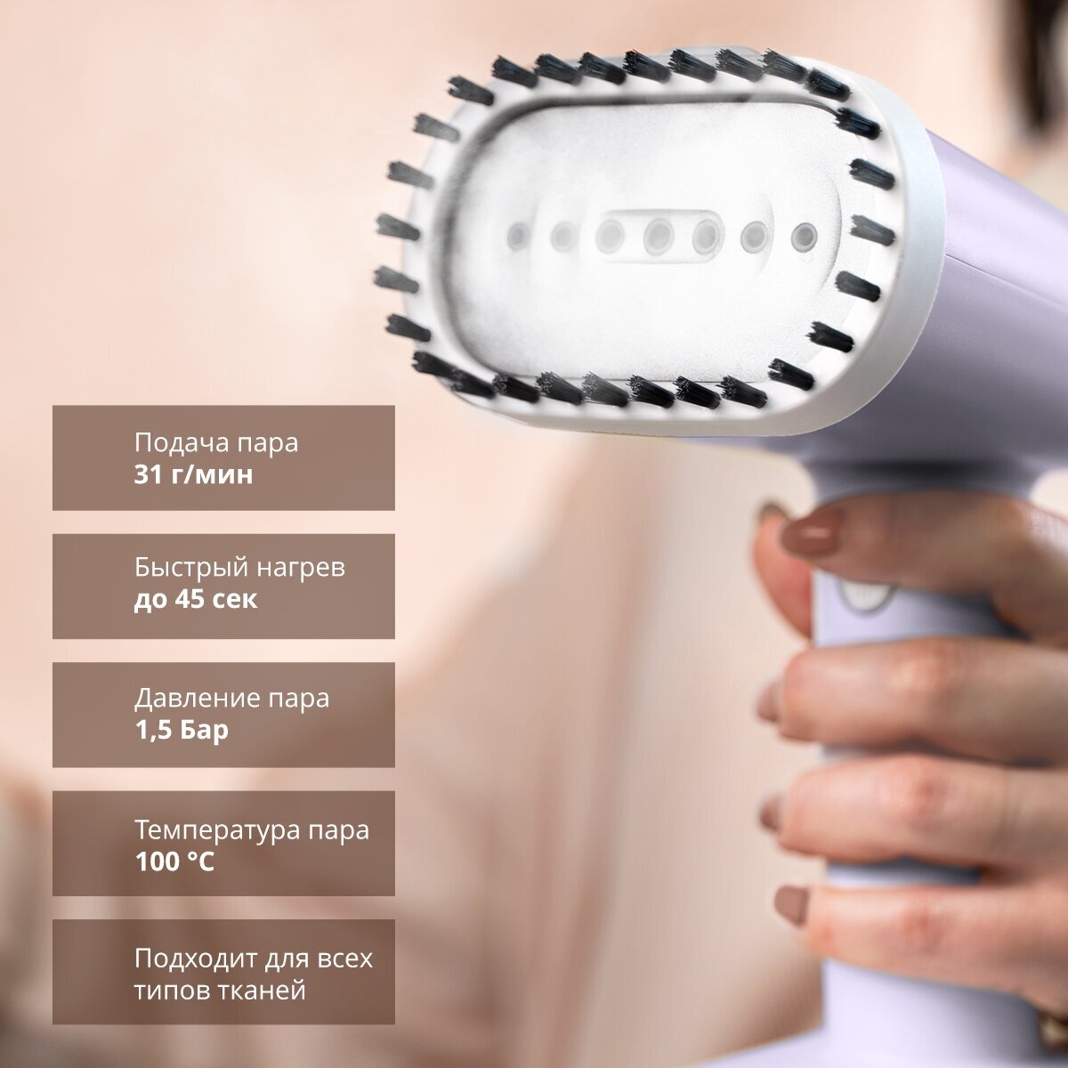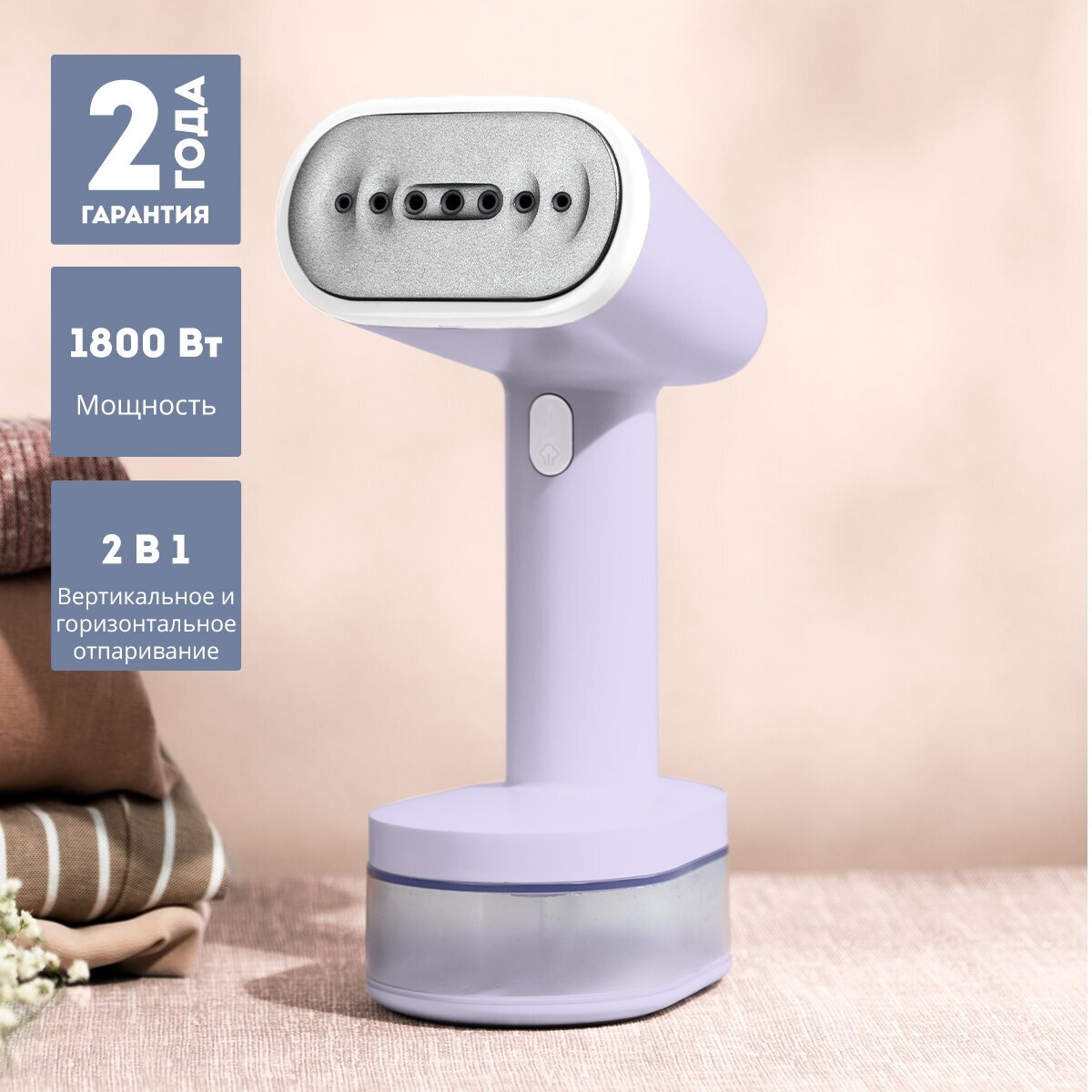 10 цен на Отпариватель ручной Galaxy LINE GL 6198 сиреневый 1800Вт, 31 г/мин, насадка-щетка, для делик. тканей