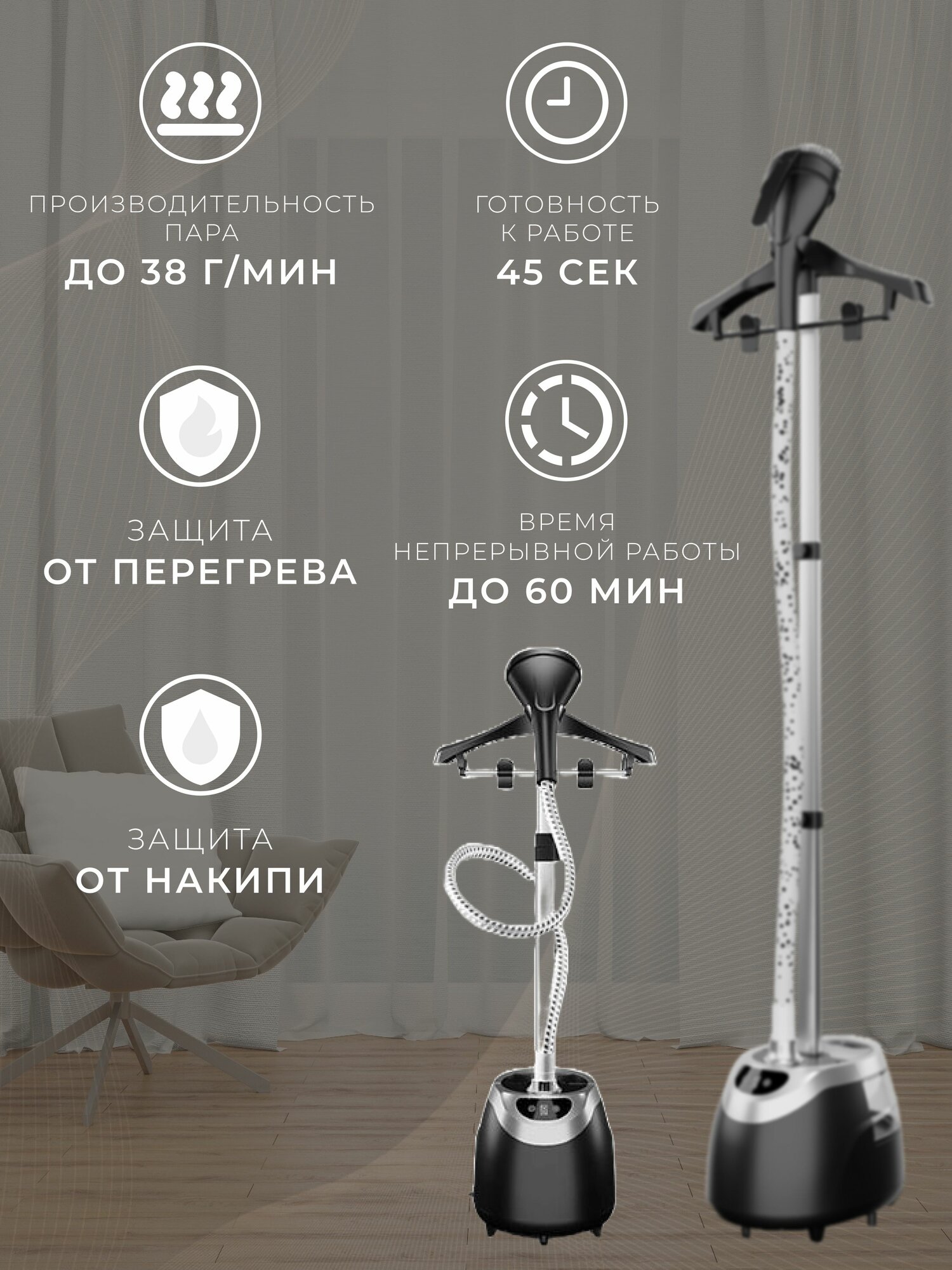10 цен на Отпариватель для одежды вертикальный напольный SATE MT-100, Черно-белый
