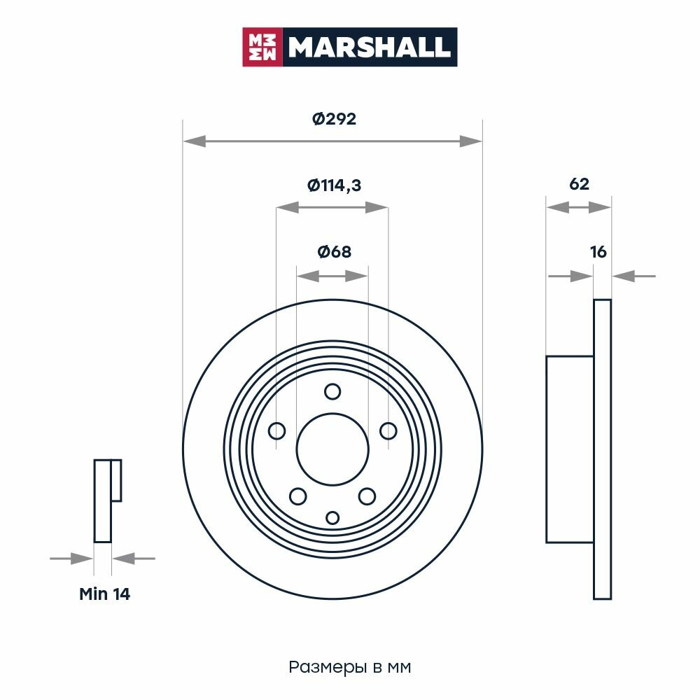 Диск тормозной задний Marshall M2000458 для а/м Nissan X-Trail T31, Qashqai 2wd, Renault Koleos 1G с эл. ручником 292x16 мм. информация: