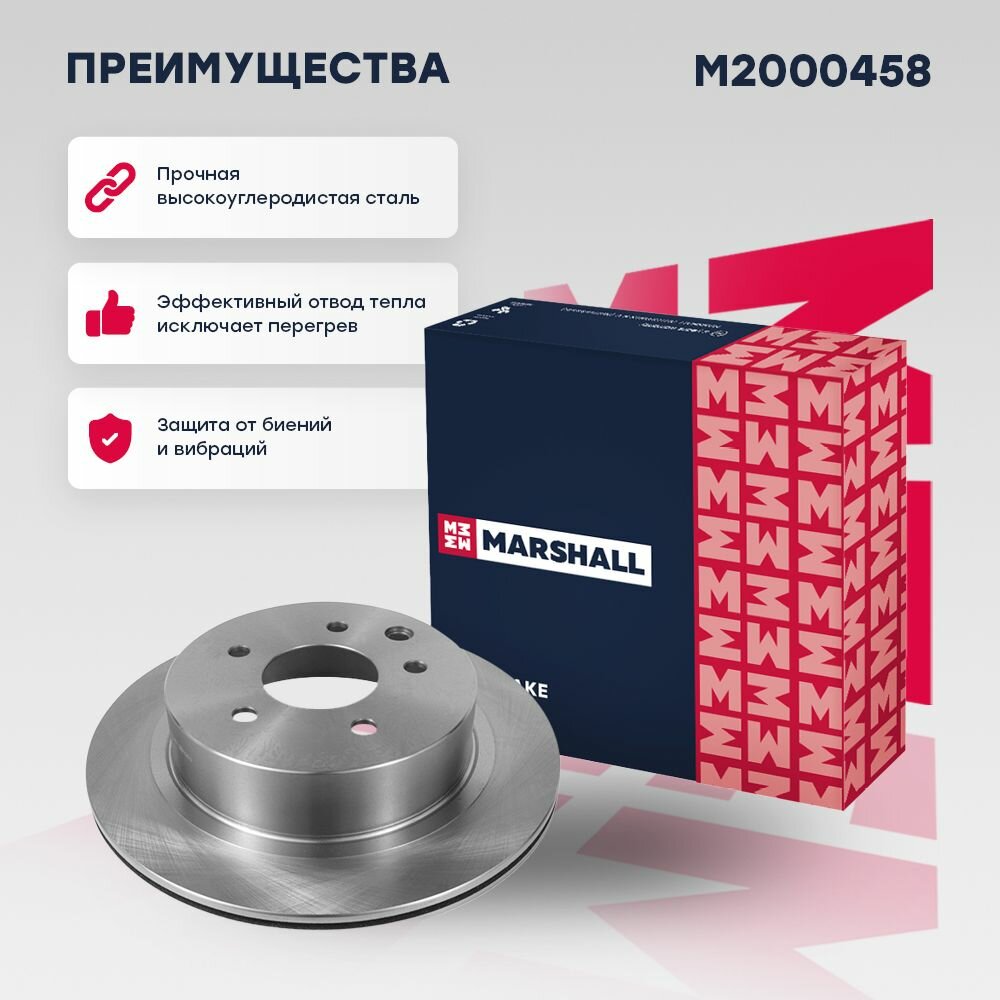 Тормозной диск задний MARSHALL M2000401 для Hyundai Solaris IV (RB) 10-, Kia Rio III (UB) 11- (DF7928 // 584110U300, 584110U300)
