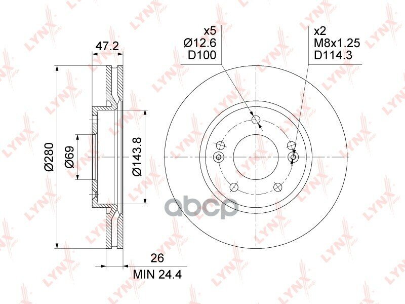 Lynx диск тормозной передний (280x26), hyundai i30(fd) 07-11, ix20 10-, kia ceed(ed) 06-12, cerato(td) 10-, soul i-ii 0 bn1556