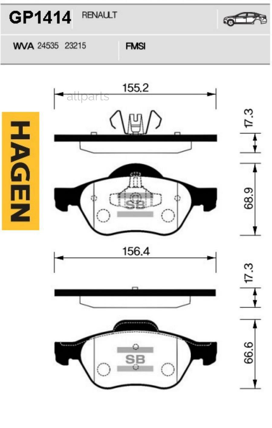 Отзывы на SANGSIN BRAKE GP1414 Колодки торм. дисковые HAGEN Renault CLIO 06- Megane II