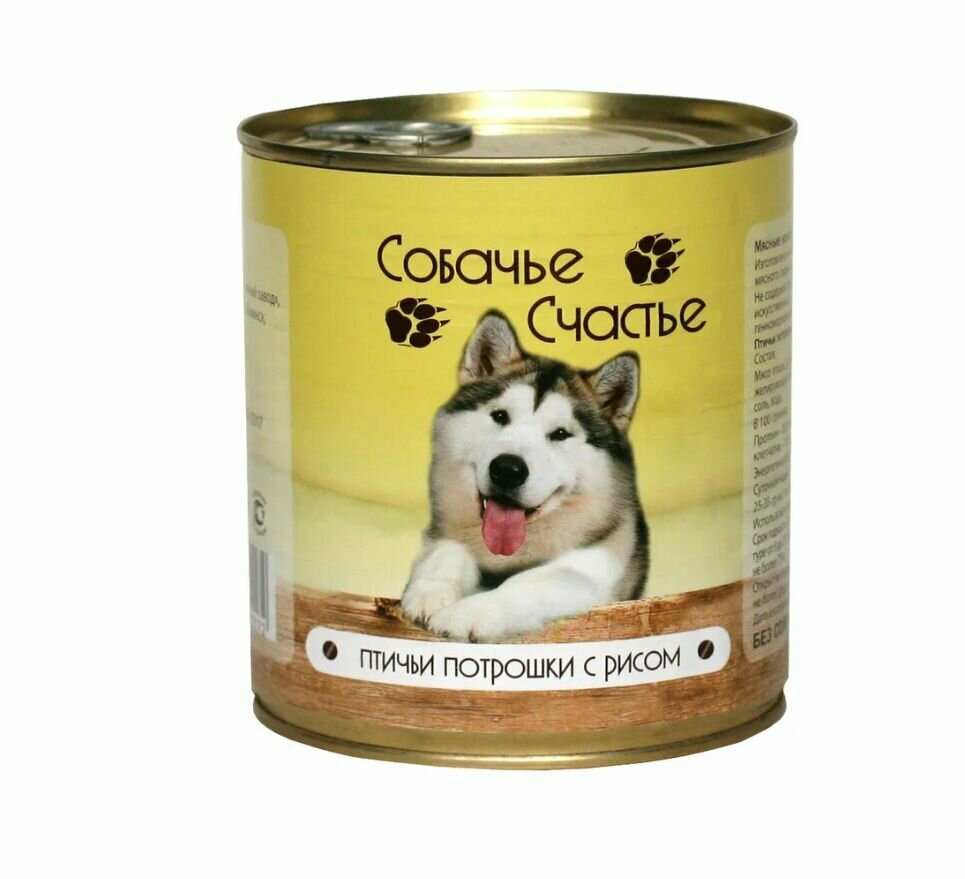 Консервы для собак Собачье Счастье с птичьими потрошками и рисом 750 г. 789 ₽