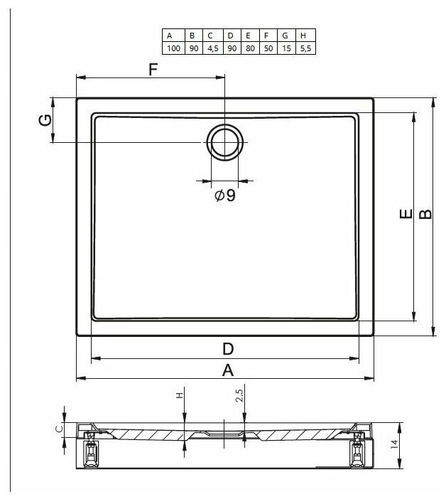 Акриловый душевой поддон Riho Davos D002007005 100x90 см информация: