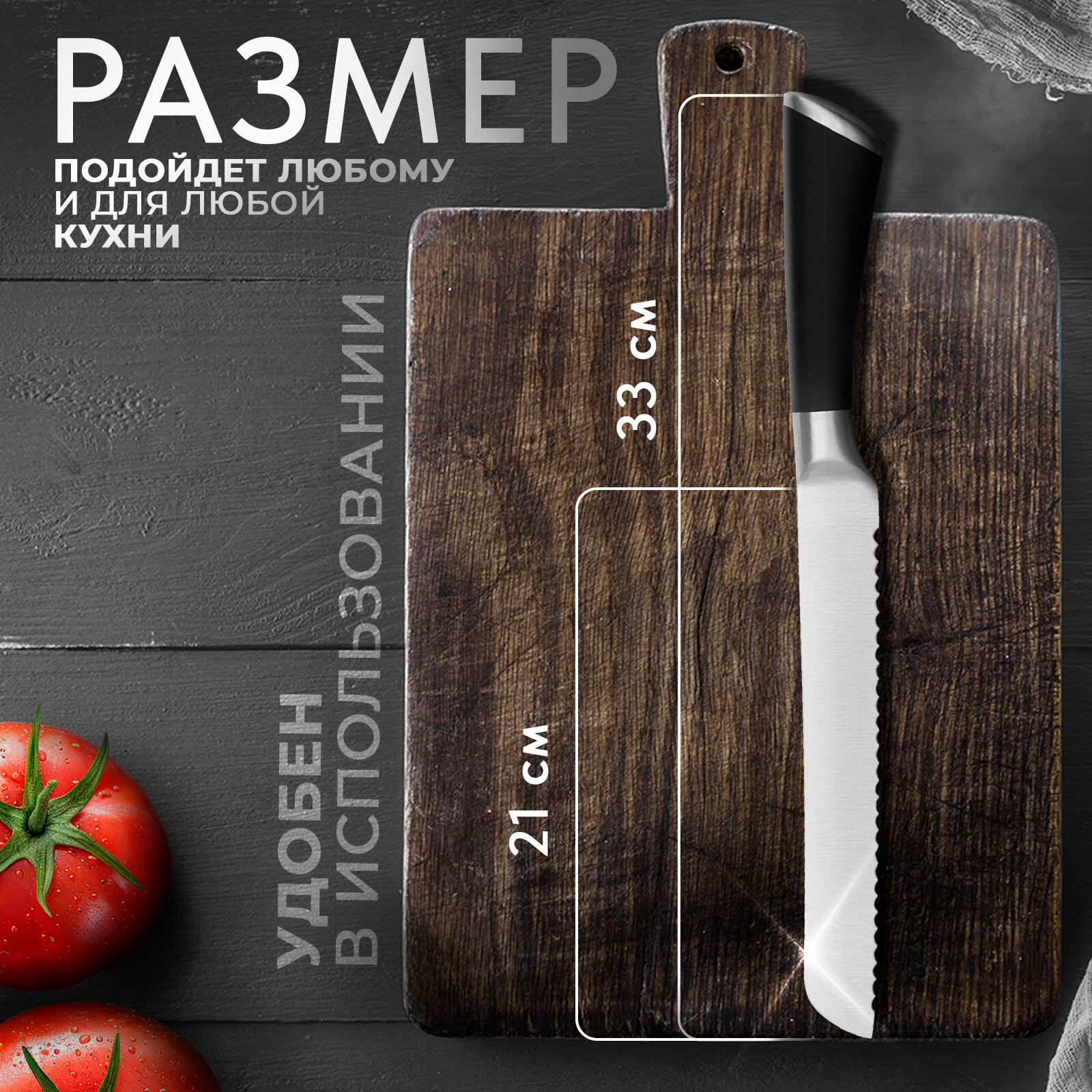 Отзывы на Нож столовый для хлеба Доляна Venus, лезвие 21 см, цвет чёрный