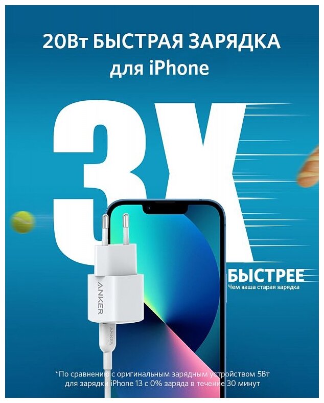 Зарядное устройство Anker PowerPort III Nano 30Вт USB-C для Iphone 14 , 13 , 12 серии / быстрая зарядка без кабеля