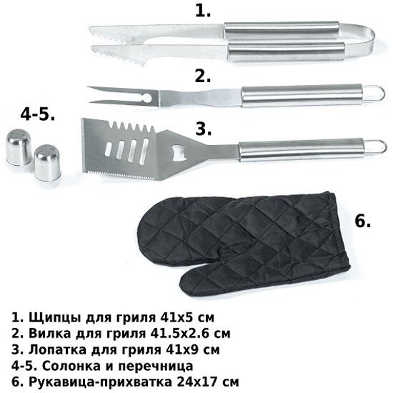 Набор для гриля Green Glade ST001 из 6 предметов в фартуке ST001 (фартук, рукавица, щипцы, лопатка, вилка) информация: